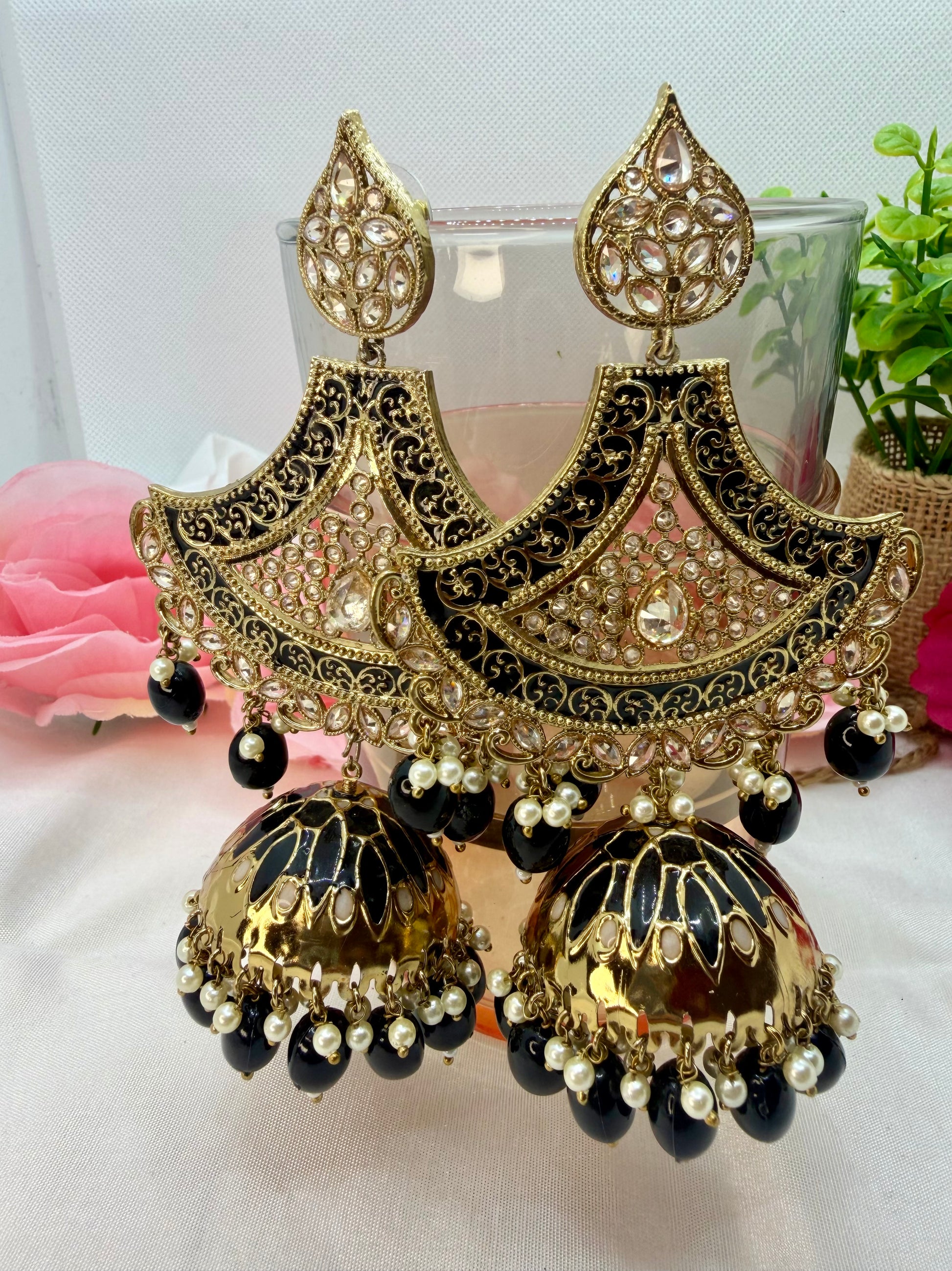 Kundan Black Earings