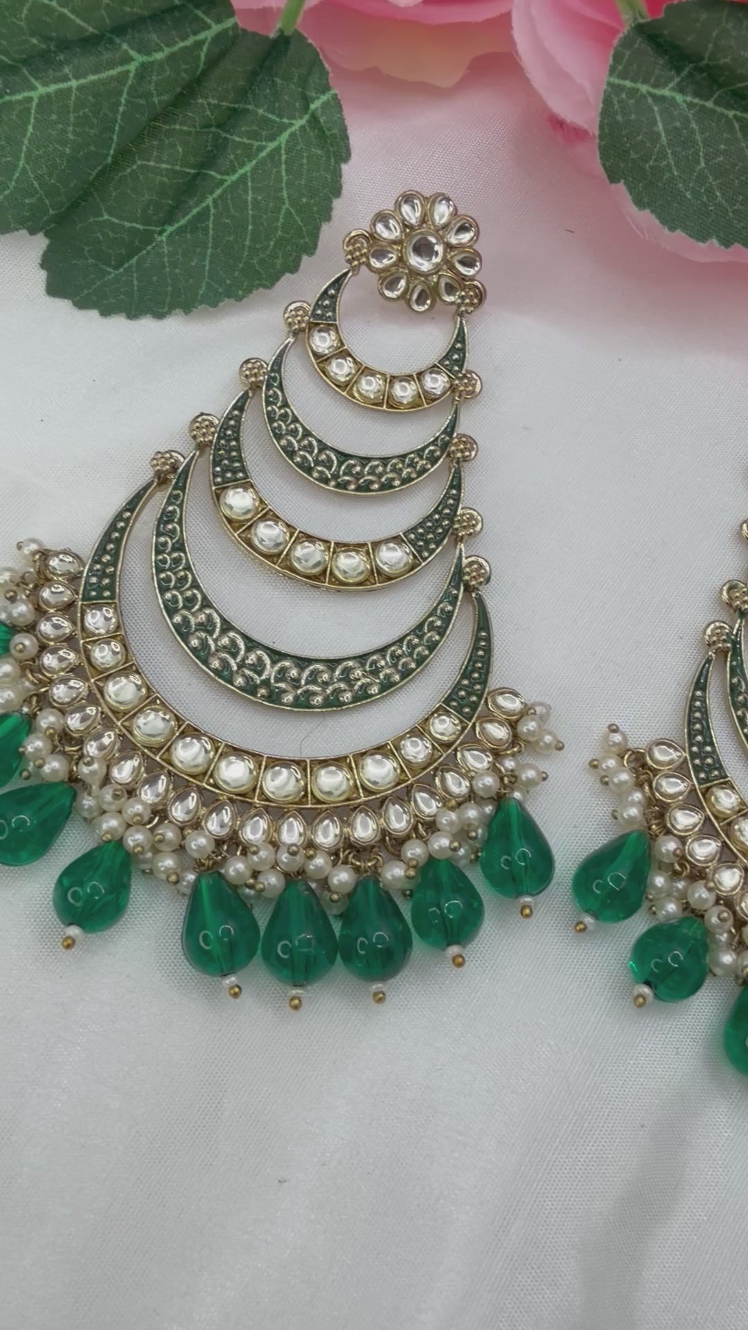 Kundan Bottle Green Earings