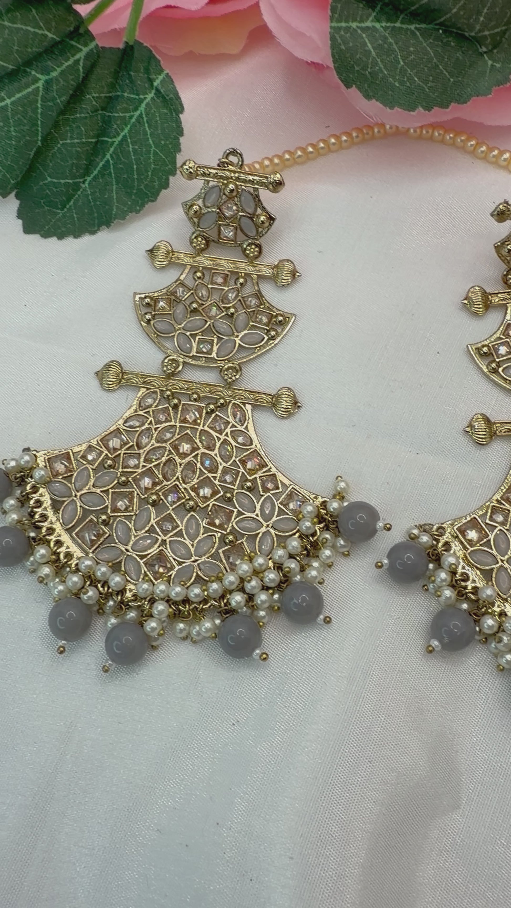Kundan Grey Earings- Pearl Sahara