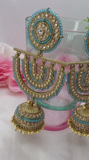 Kundan Sky Blue Jhumka Earings