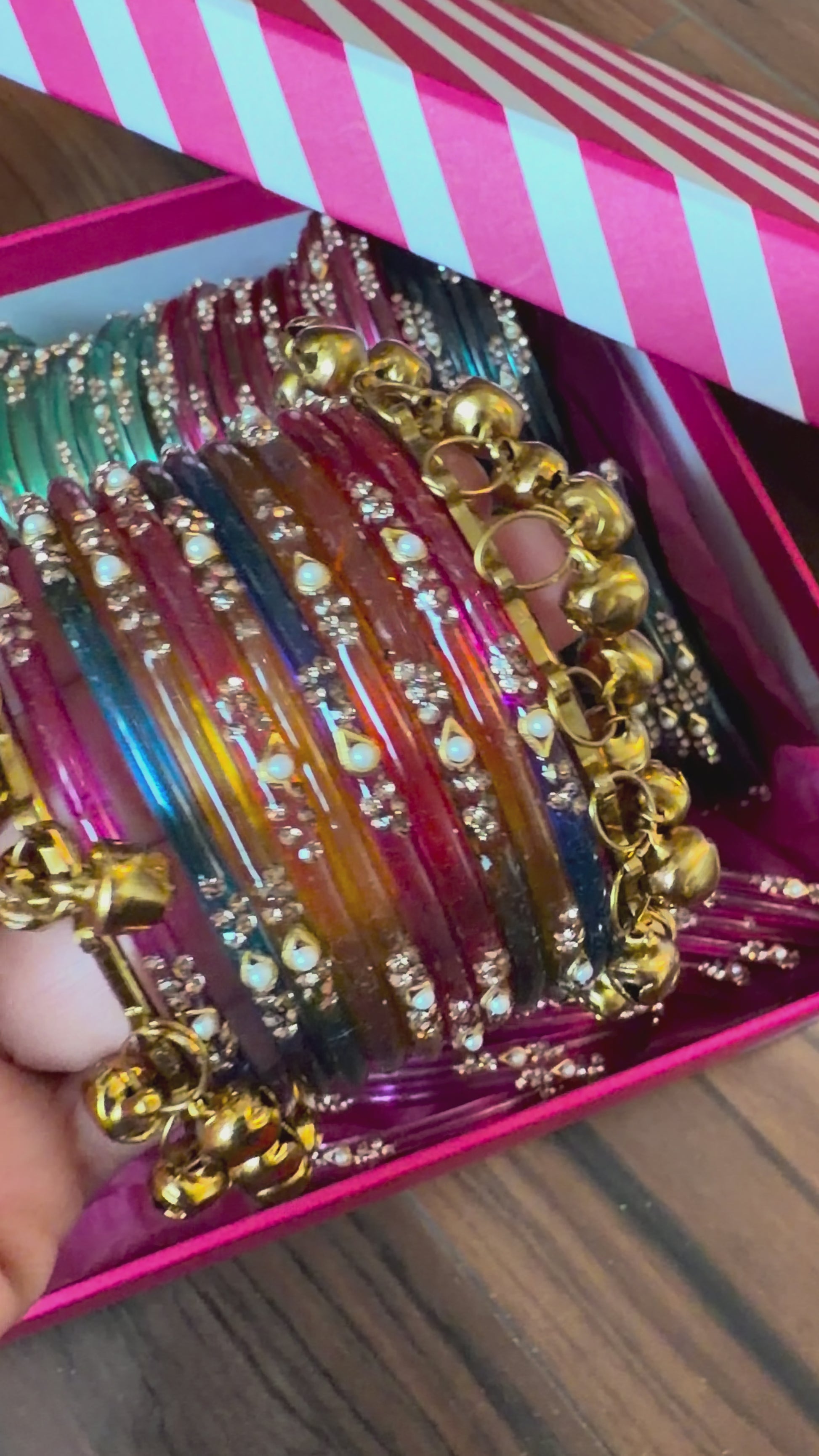 Multicoloured Ghungro Pearl Glass Bangles Set- Size 2.6/2.8