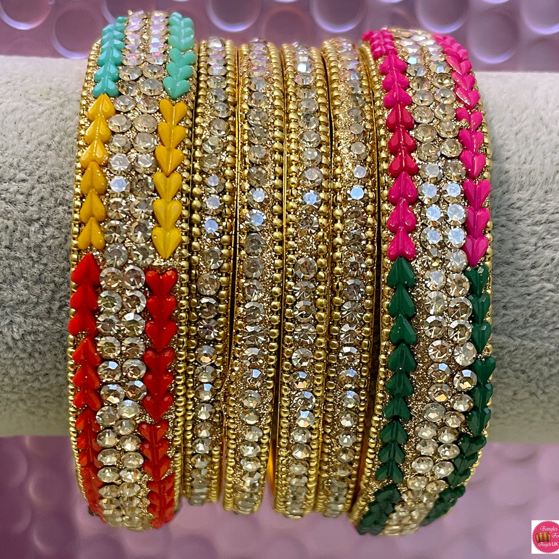 Multicoloured Metal Bangles Set- Size 2.4/2.6/2.8