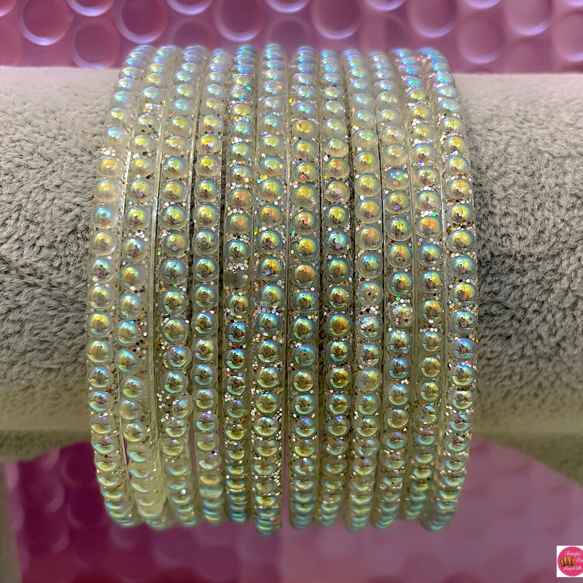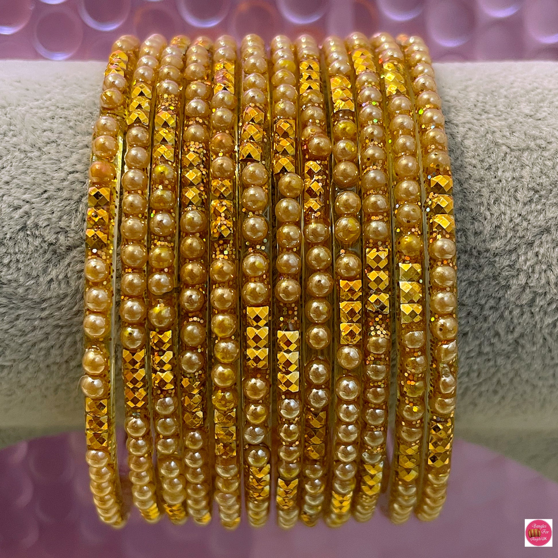 Pearl Glass Bangles- Combo Of 3 sets Gold/Silver/Multi